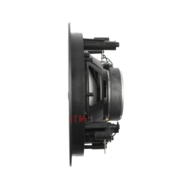 Mặt trước của loa được thiết kế tối giản với lưới ê-căng siêu mỏng, có thể sơn lại theo màu trần giúp đồng bộ nội thất. Bên trong là hệ thống củ loa gồm loa bass 8 inch và tweeter 1 inch vòm làm bằng titanium. Thiết kế này giúp loa gần như “biến mất” khi lắp đặt nhưng vẫn đảm bảo hiệu suất âm thanh mạnh mẽ.